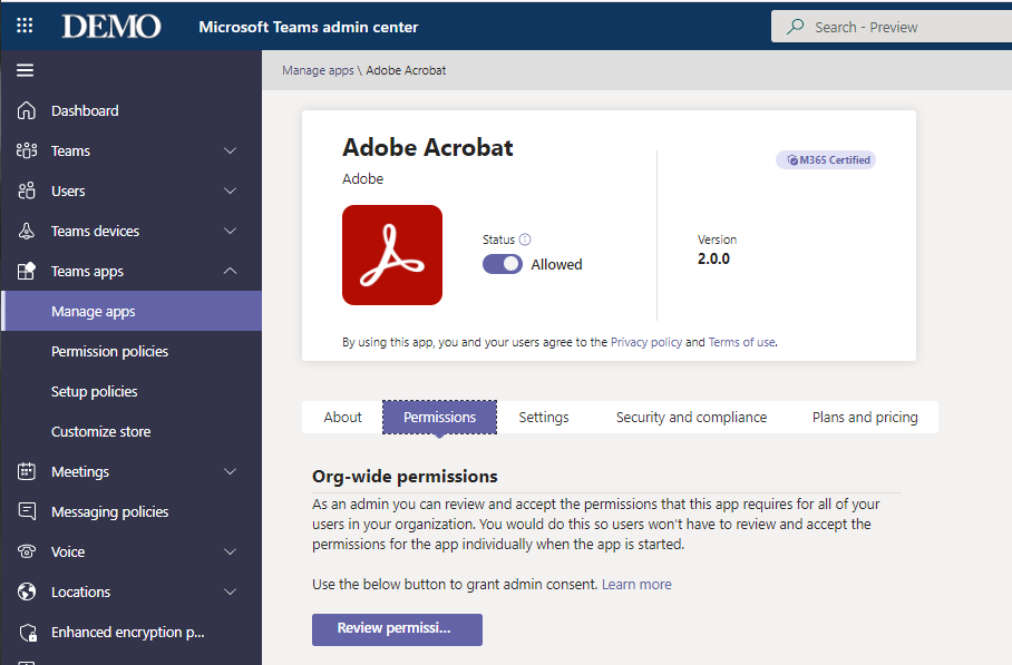 2. Gör Acrobat-appen tillgänglig för användarna i Teams-klienten