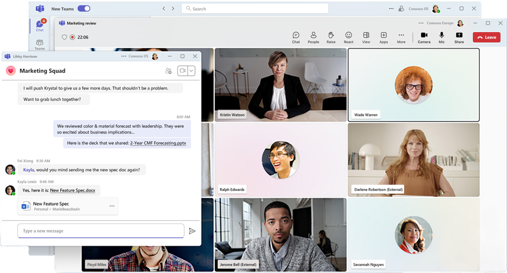 - Integrerade arbetsflöden: Nya Teams erbjuder sömlös integration med befintliga Microsoft 365-appar. Detta innebär att du kan ta emot uppdateringar och samarbeta i dokument i större utsträckning än förut, direkt i Teams utan att behöva byta mellan olika appar.