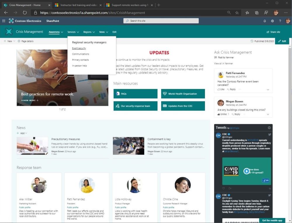 Skapa en särskild site för krishantering i SharePoint. Bildkälla: Microsoft