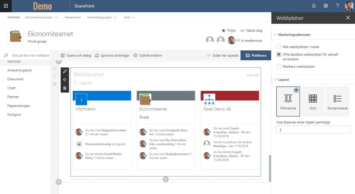 Läs om intressanta uppdateringar i SharePoint som påverkar både innehåll och utseende. Teams och OneDrive har också uppdaterats med nya funktioner som kan hjälpa dig att bli mer produktiv.