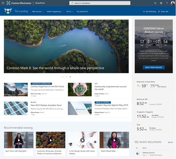 Dela in din SharePointsida med hjälp av sektioner. Bildkälla: Microsoft