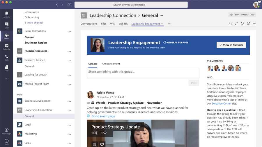Yammer-feed i Teams. Bildkälla: Microsoft
