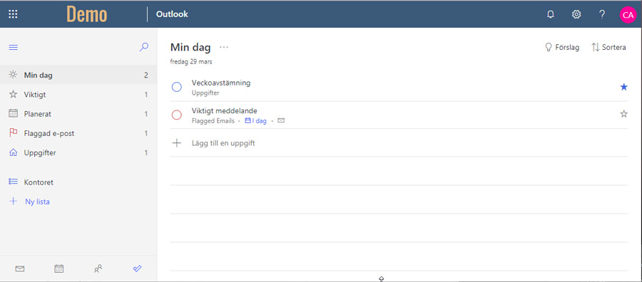 I Microsoft To-Do (helt ny applikation som ersätter Uppgifter) kan du planera din dag med hjälp av uppgifter. Nu finns det en koppling mellan webbversionen av Microsoft Outlook och Microsoft To-Do. Med den kan du kan skapa en uppgift i To-Do när du flaggar ett mail i Outlook.