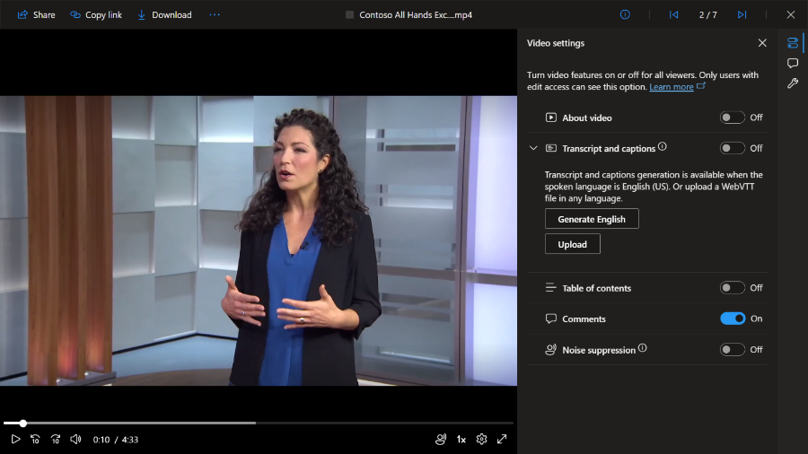 Generera textning i efterhand i Microsoft Stream-spelaren. Bildkälla: Microsoft