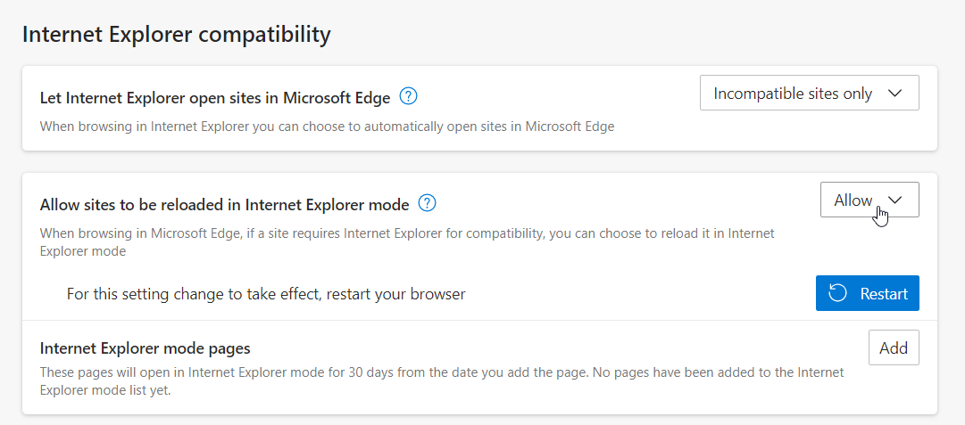 IE11 kommer avvecklas och omdirigeras till Edge - har du slagit på IE-läget?