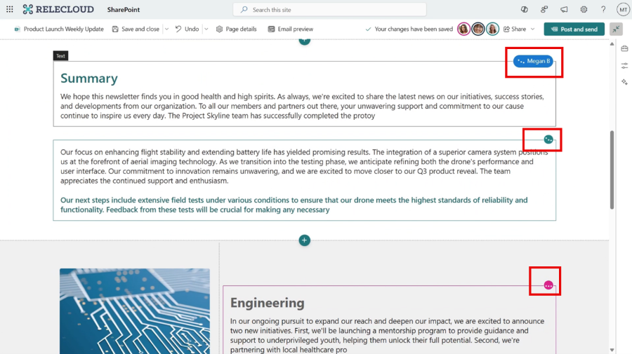 Se kollegornas ändringar samtidigt som du jobbar med en annan del av sidan. Bildkälla: Microsoft