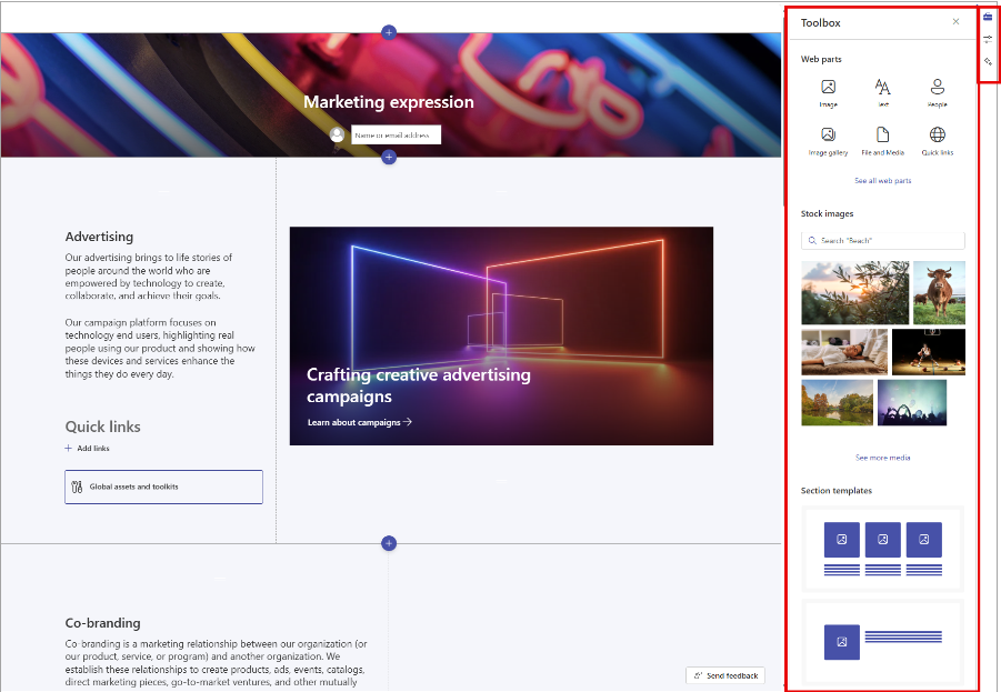 Har du upptäckt den nya “Verktygslådan” i SharePoint som dyker upp när du arbetar med sidor och nyheter? Den finns för att göra ditt arbete smidigare och mer intuitivt - allt är samlat på ett ställe för att du snabbt ska hitta det du behöver.