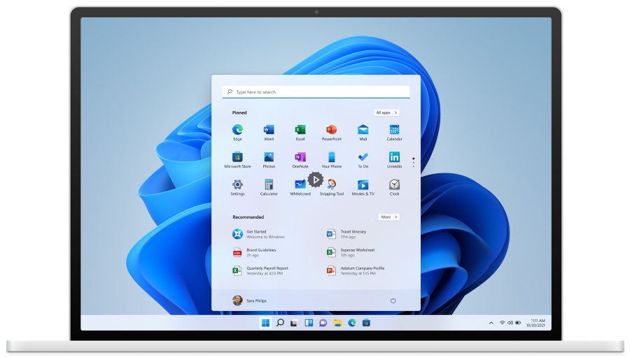 Det nya operativsystemet Windows 11 kommer bland annat ha ett omgjort gränssnitt och förenklad startmeny. Bildkälla: Microsoft