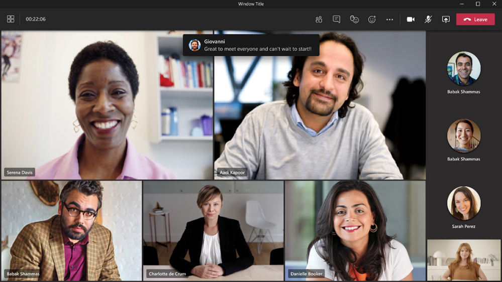 Chattinlägg som skickas i ett Team-möte visas nu som pop-uprutor - Chattbubblor - direkt i mötet, vilket gör chatten mer central för konversationen och lättare att följa. Du behöver inte längre öppna chattfönstret manuellt i ett möte för att se vad deltagarna skriver men du kan öppna det för att till exempel gå tillbaka och läsa tidigare inlägg.
