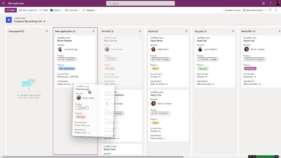 Snart kommer du att kunna arbeta med listdata i en tavla – ungefär som i Planner. För att flytta objekt mellan olika steg i processen kan du använda drag-and-drop och när du flyttat ett objekt till en annan kolumn ändras statusen automatiskt.