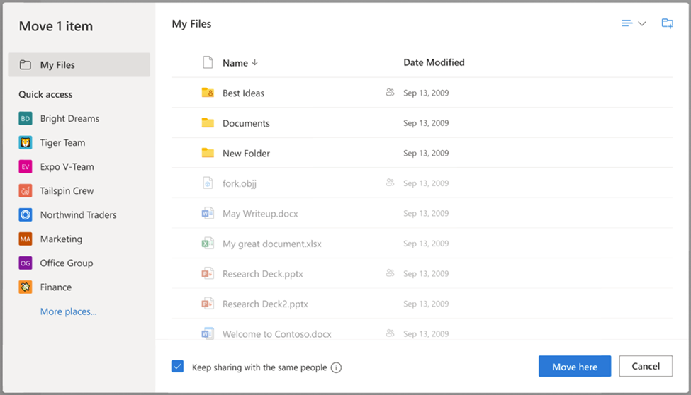 Användarupplevelsen för att flytta och kopiera i SharePoint och OneDrive kommer få en välbehövlig uppfräschning för att göra det lättare för dig att hitta och välja var du vill flytta eller kopiera dina filer och mappar.