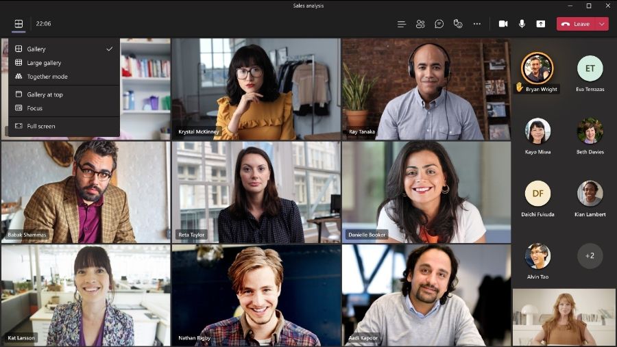 Alla visningsrelaterade alternativ i teamsmöten kommer flyttas från Fler åtgärder-menyn till en egen vyväxlingsmeny uppe till vänster.
