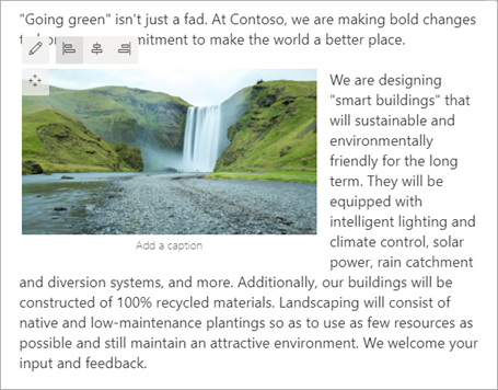 Nu är det möjligt att till exempel lägga in en vänsterställd bild i en textwebbdel. Bildkälla: Microsoft