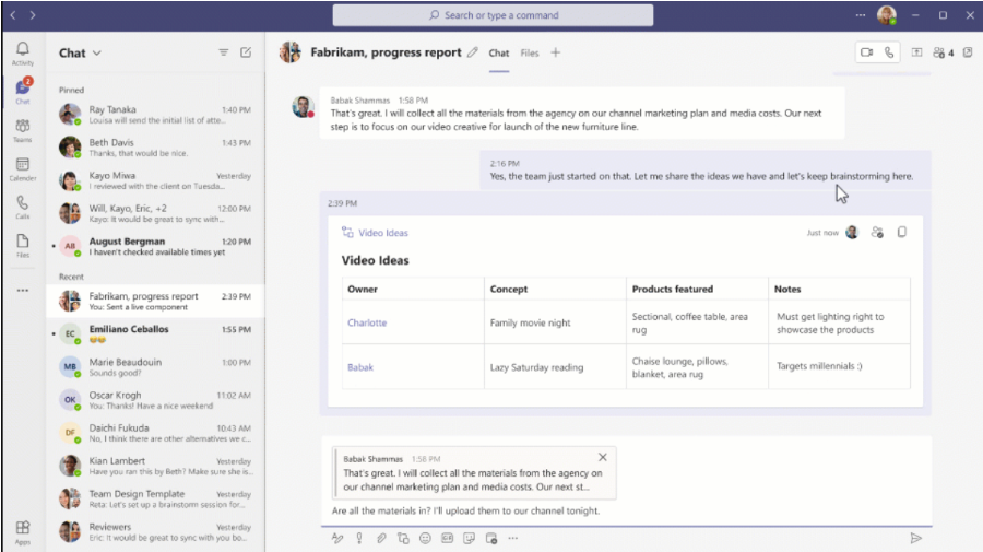 Svara på ett specifikt chattmeddelande i Teams-chatten - nu även i Desktop. Bildkälla: Microsoft