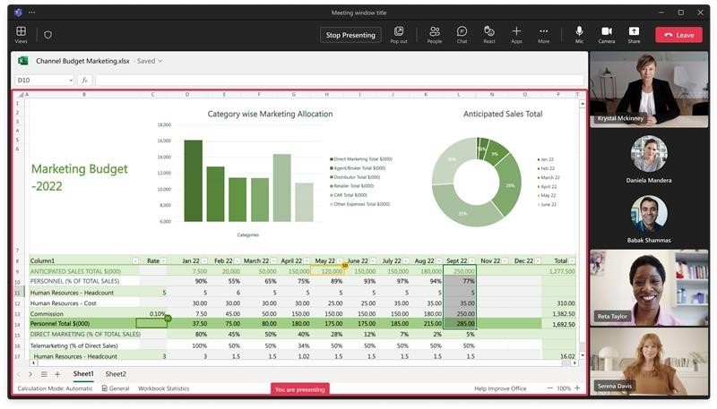 Arbeta direkt i Excel under mötet med Excel Live. Bildkälla: Microsoft