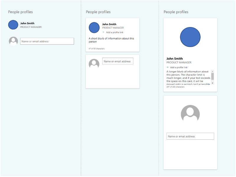 Nu kan du visa personprofiler i 3 olika format. Bildkälla: Microsoft