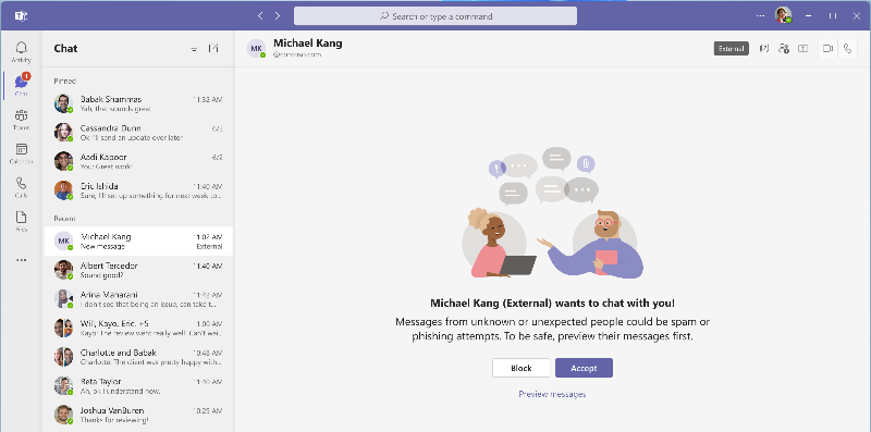 Godkänn eller blockera nya chattar från externa användare. Bildkälla: Microsoft