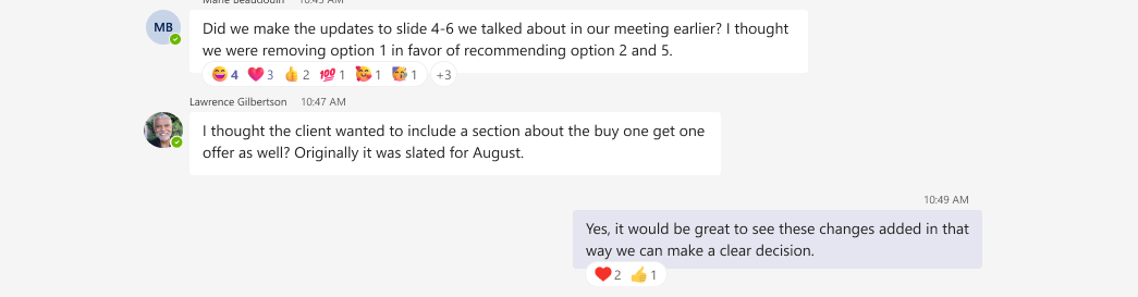 Reagera på chattmeddelande med valfri emoji. Bildkälla: Microsoft