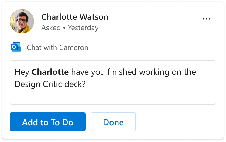 Nu kommer det kunna visas fler innehållstyper och du får möjlighet att agera på informationen direkt genom att exempelvis skapa en uppgift i To-Do eller skicka mail.