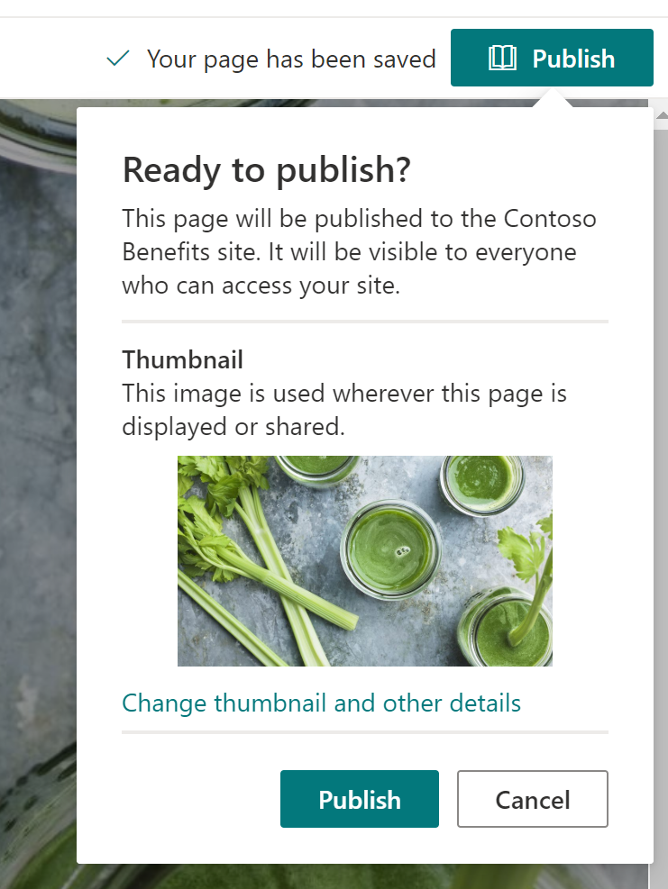 Förhandsgranska sidinformation innan du publicerar. Bildkälla: Microsoft