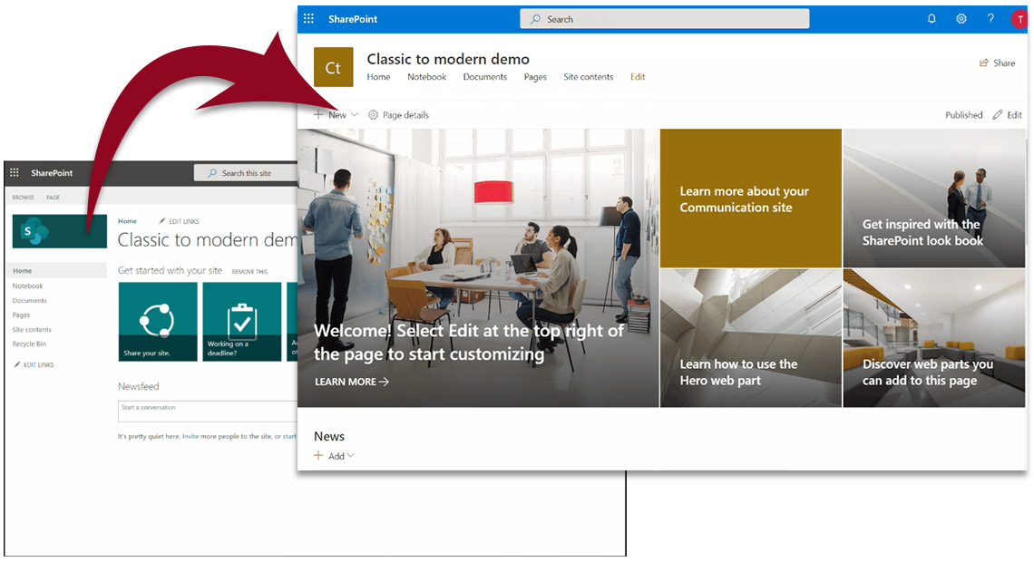 Uppgradera dina klassiska SharePoint-siter till moderna