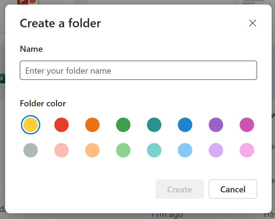 Det finns 16 olika färger att välja på när du skapar en ny mapp i SharePoint, Teams och OneDrive och det går även byta färg på befintliga mappar.