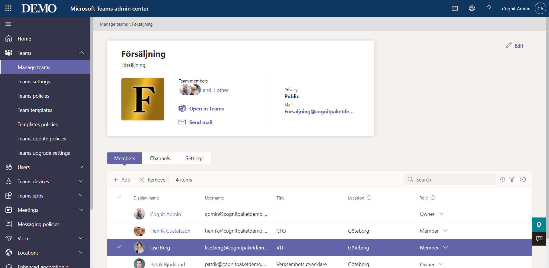Självklart kan du också göra de här ändringarna direkt i Teams om du är ägare i berörda Team.