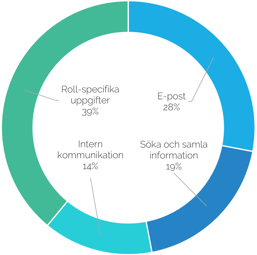 En studie från McKinsey/IDC som (av någon anledning) återkommer i någon form gång på gång i artiklar om den ”digitala arbetsplatsen”, ”sociala ekonomier” och annat relaterat till området har några intressanta siffror. Notera dock att data är från 2012, mycket har förmodligen hänt.