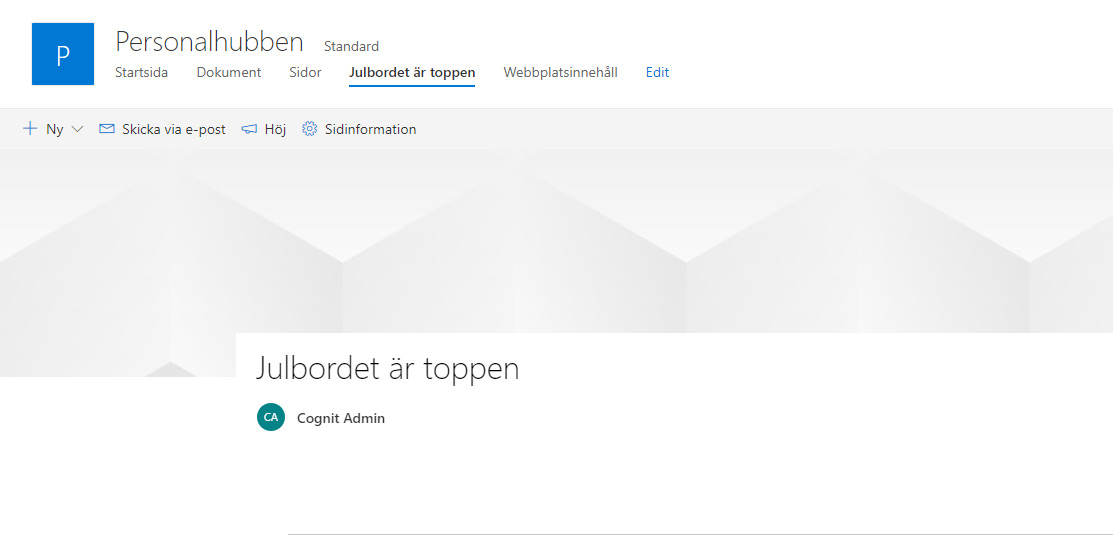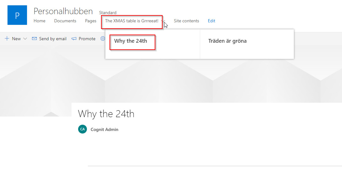 I bilden nedan så har jag lagt till en sida med en svensk titel, ”Julbordet är toppen”, jag har också valt att lägga till den i navigationen