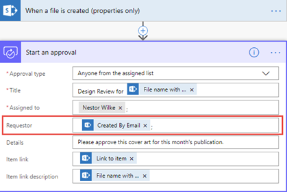 Problemet är att när du skapar ett flöde för ett dokumentbibliotek som automatiskt skickar en granskningsförfrågan till Lise. kommer du (Stina) som skapat flödet att stå som avsändare på godkännandeförfrågan istället för Bengt som var den som laddade upp filen.