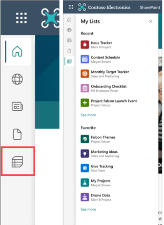 Snart kommer du kunna hitta till de Microsoft 365-listor som du följer eller har visat ofta från vänstermenyn i SharePoint. Redan nu kan du använda vänstermenyn för att navigera på intranätet, navigera mellan olika SharePoint-siter, läsa nyheter och hitta aktuella dokument. Det nya valet, Listor, använder du för att navigera till olika listor i Microsoft 365 Lists-appen. Det kommer också finnas en breadcrumb-meny för att enkelt kunna gå till SharePoint-webbplatsen där listan finns.